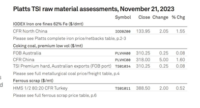 جدول قیمت زنجیره فولاد؛انرژی و فلزات اساسی در تاریخ 8 نوامبر 2024 طبق اعلام موسسه پلنر